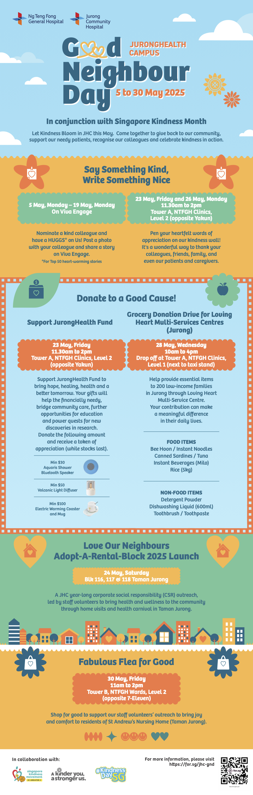 As part of the community in the west, JurongHealth Campus has been hosting the annual Good Neighbour Day since 2015. This special event provides corporations, individuals and our staff a platform to give back to the community and the opportunity to come together to show kindness and reach out to non-profit organisations operating in our neighbourhood.