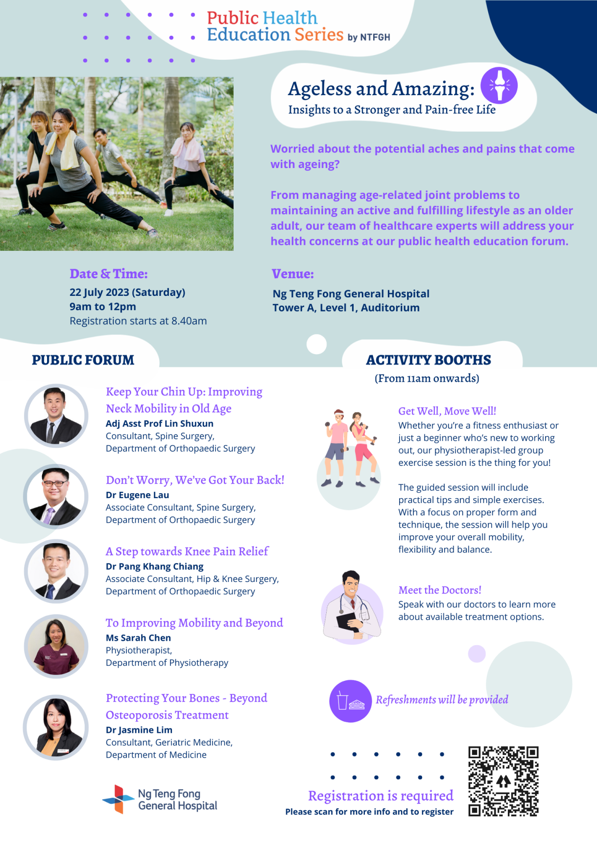The Public Health Education Series (PHES) is a list of health talks that are organised by our team of healthcare professionals at NTFGH. It covers a wide range of topics such as common health conditions, general health and wellness.