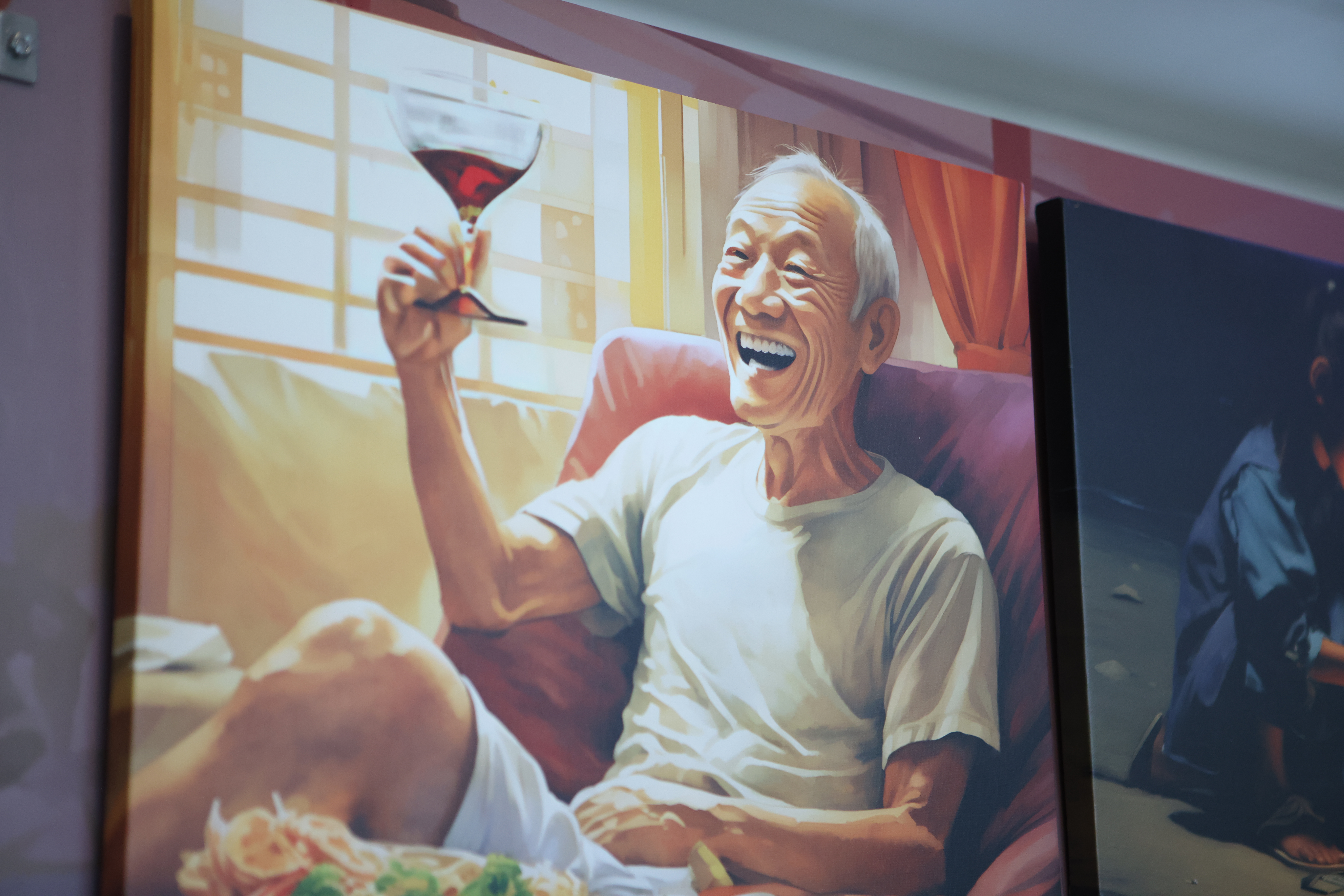 “The Sound of PortrAIts” is a collaboration between JCH Art Therapist Lee Sze-Chin and his Art Collective, Kronoscapes, together with Sound Designers, Artwave Studio. Co-created over a series of art-making sessions and recorded interviews with six patients and caregivers from JCH’s dementia ward, the artworks blend the power of oral storytelling with the creative potential of Artificial Intelligence (AI), immersing visitors in the poignant narratives of patients as they share their stories through their own voices and their self-portraits.